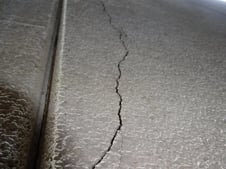 通路内にあるクラックはVカットをしてクラックをワザと大きくして