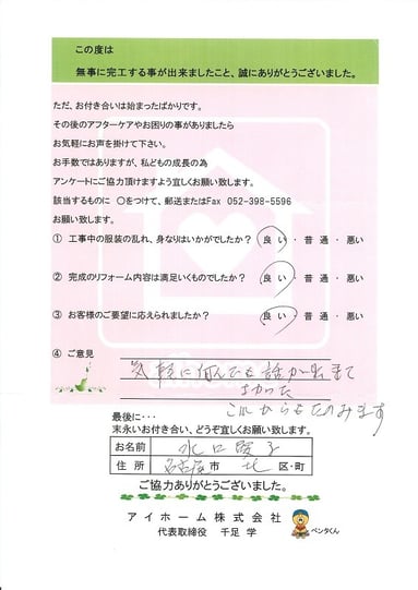 水口様は2年前からの弊社のお客様で今回も同じ様に雨漏りが起きたので