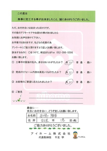 竣工後のお客様アンケート