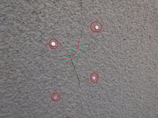 クラックの周りを釘で抑えて補修材で補修しました。