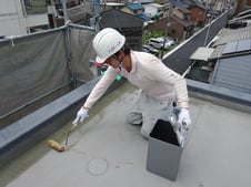 最初に下地密着材のプライマーを塗装してからガラスクロスと主材(プルーフロンバリュー)を