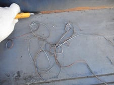 階段の床面・階段下場は機械や道具を使いサビや汚れを落としてから鉄部には