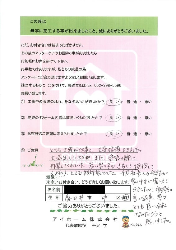 しっかりN様のご自宅を守っていきますので宜しくお願いします。