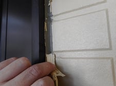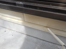 雨漏りが起きていた水切りのコーキングを撤去して雨水の流れ道を確保しました。