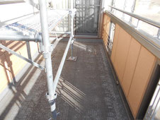 その事によりベランダの床材が傷み、床材の表面が剥離を起こしていました。