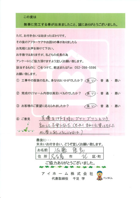 お客様アンケートに記載してある様に不安な思いをさせてしまい申し訳ありませんでした。