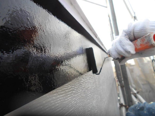 持たせてから遮熱効果があるシーラーで外壁材を塗り指定された塗料で2回塗りました。