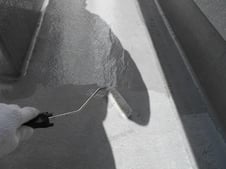 ベランダに関して床のコケや藻を高圧洗浄機で綺麗に落としてから下塗り・上塗り2回の3回塗りで
