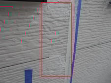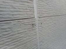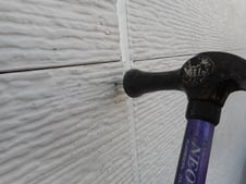 細かいクラックも補修材で直し、浮いた外壁材もキリで穴を空けて釘で止めましたので外壁材がズレル事はありませんのでご安心ください。