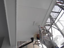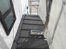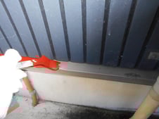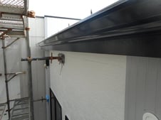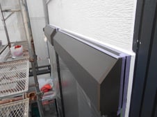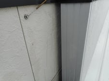 建物の隙間に板金を張り付けて固定させ外壁材の劣化を送らさせましたのでご安心ください。