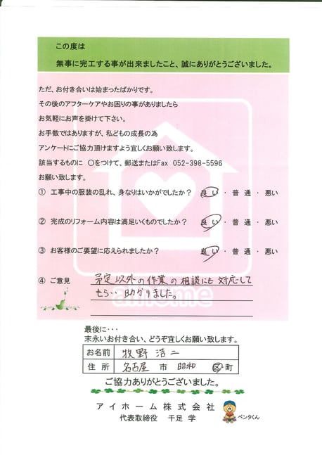 しっかり牧野様のご自宅を守っていきますので宜しくお願いします。