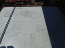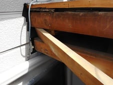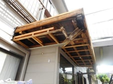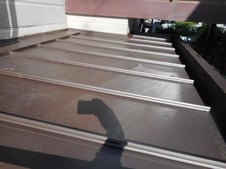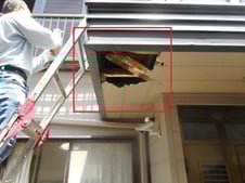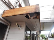 腐敗した木材と軒天を撤去させて頂き、傷んだ板金の上に新しくべニア板を引いて