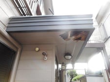庇の枠も板金を巻いて丈夫にさせて頂き、軒天も新しく貼り直してから塗装させて頂きました。