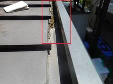 庇の雨水を拾う箇所にズレが生じてその隙間から雨水が入り込んだ事により