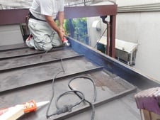 防水シートを貼った後に新しく板金を加工して貼り、雨漏りを止めて雨水がドレンに