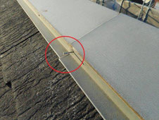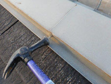 最初に棟板金を止めている釘をハンマーで叩いて戻し、再発防止の為に