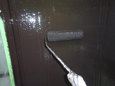 雨戸に関してはワザと細かい傷を付けて塗料の密着を良くして前回塗装させて頂いた色を2回塗り