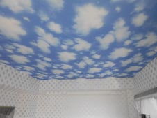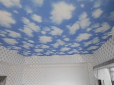 床は以前のものより明るいもので、天井には青空のクロスを貼ったので、