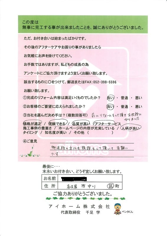 竣工後お客様アンケート