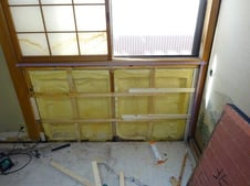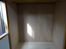 材木屋で敷居に溝を突いてきてもらい、内部は化粧ボードからベニヤ仕上げにさせて頂きました。