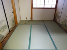 畳と障子は前回と同じで、劣化しにくい樹脂畳と水拭き可能で、丈夫な障子紙を使用いたしました。
