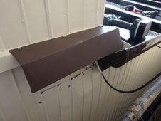 庇を戻すことができないので柱を付けて固定をして、庇の天板を新しく板金加工して直しました。