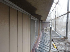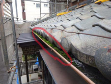 雨樋にも上手く水が流れていなく、コケが大量に発生していて雨樋が傾いていました。