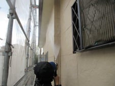 • 外壁 水洗い 施工中
