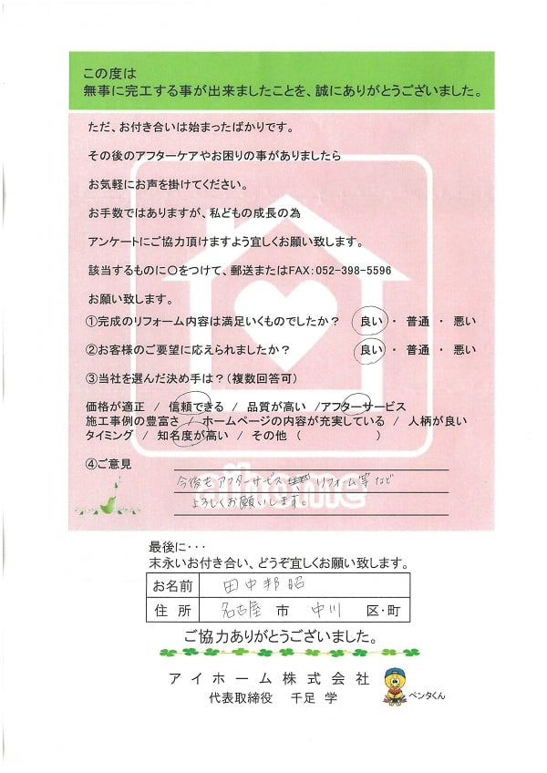 名古屋市中川区田中様は以前施工させて頂いたお隣様からのご紹介でご契約をさせて頂きました。