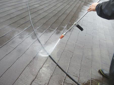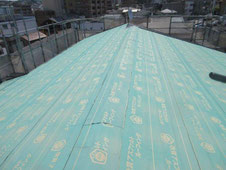 屋根を高圧洗浄で洗い、屋根を奇麗にさせて頂いてから防水シートを引き、