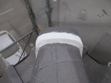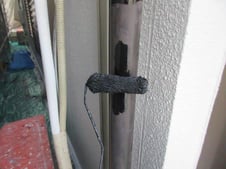 戻りきらず、隙間が空いている所は補修材で埋めて雨水の侵入を止めました。