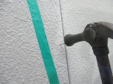 浮いている場所は所々あり、キリで穴を空けて釘で外壁材を出来るだけ戻しました。