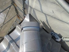 屋根の鬼瓦の漆喰も年月が経ち取れていたので補修材で瓦を止めて、新しく漆喰を付けて