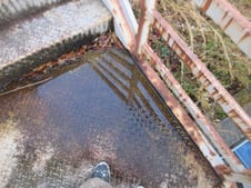 階段が少し傾むき、踊り場に水たまりができてました。